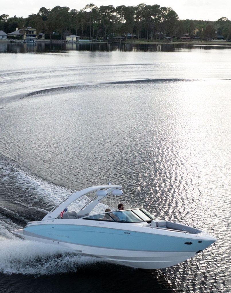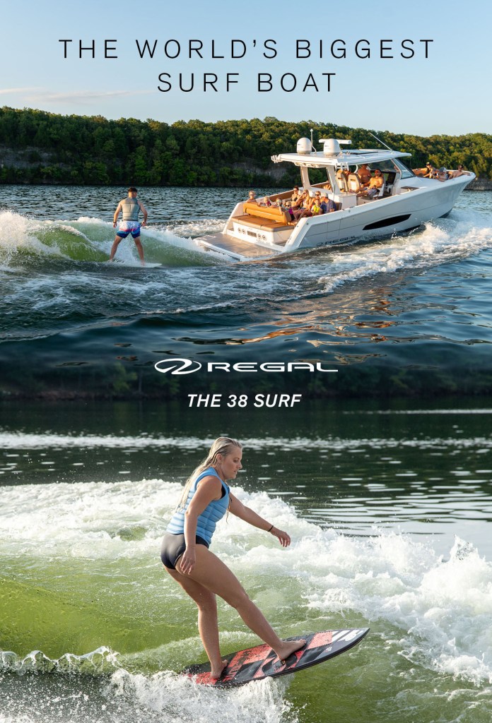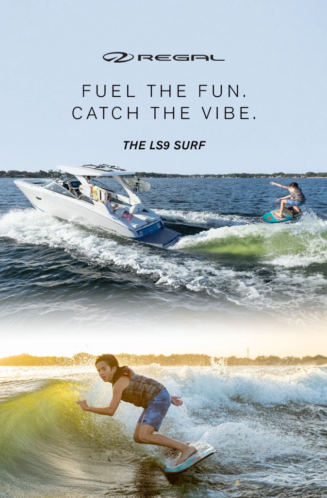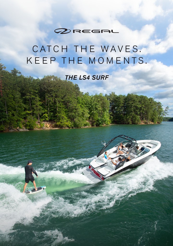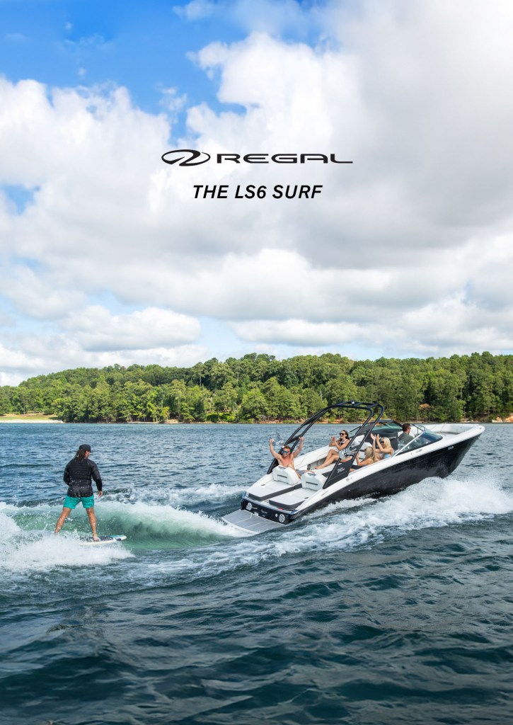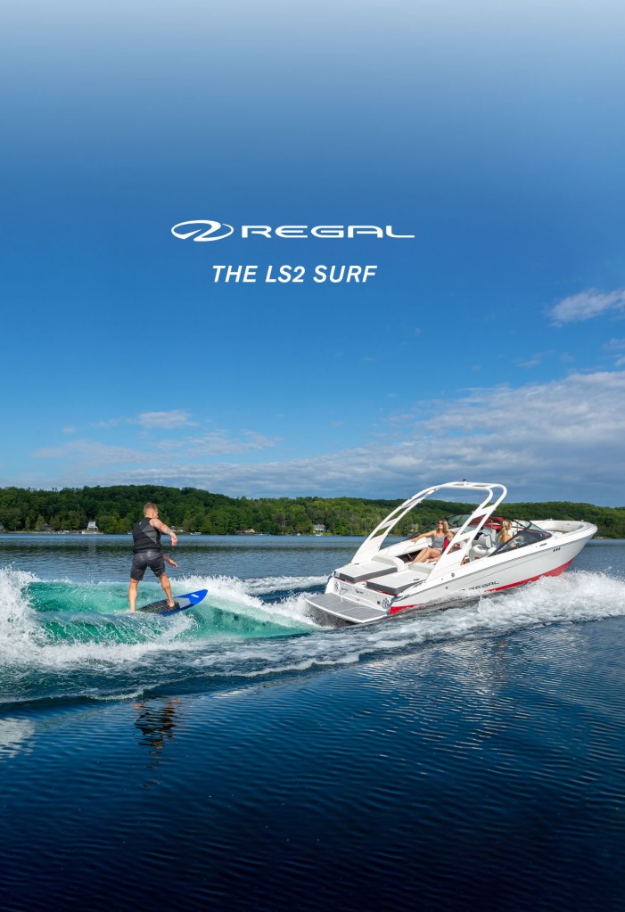 With an intuitive wave-shaping surf system, the Regal Surf series carves deep into the water – creating a signature wake surfing experience at the touch of a button.